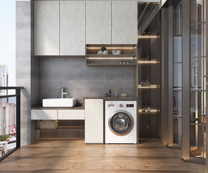 装修时,阳台上的柜子越多越好。 柜子多,不用到处乱放,家里也显得整洁清新。 尽量选择一些容易清洗的材质和颜色。 阳台通风防尘较多,便于打扫。 另外,阳台柜背面的防水层一定要做好。 如果防水层做得不好,就会发霉,根本无法放置。 具体区域设计师会根据具体情况进行设计。
